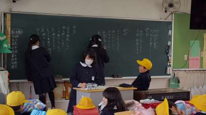 地域児童集会では16地域に児童が分かれ各地域ごとに6年生の進行で、冬休みを健康で安全に過ごすにはどうしたら良いかをまとめました。