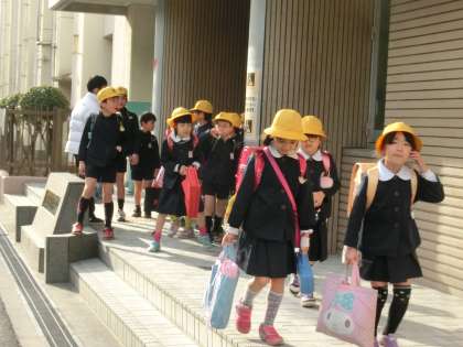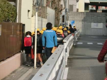 地域児童会終了後、子どもたちは地域ごとに集団下校しました