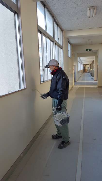 さあ、年末を迎え、学校も今はひっそりとしていますが、そんな中、管理作業員さんが壁の塗装をしてくださいました。新年はまた新しい学習環境となりそうですよ。出来栄えをお楽しみに…。