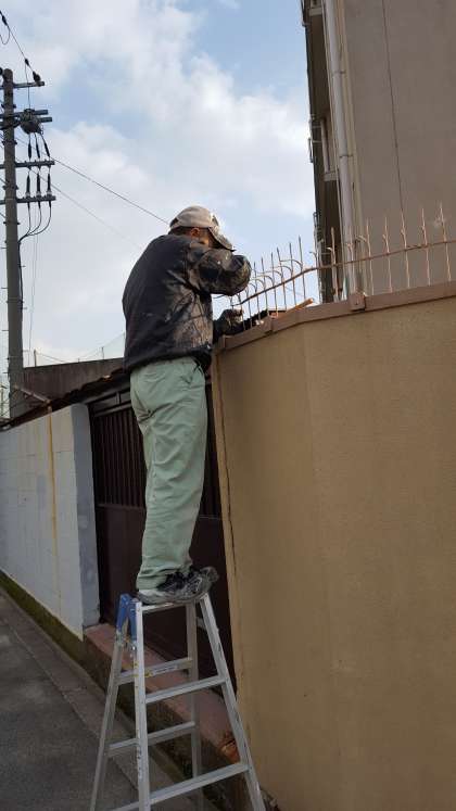 さっそく管理作業員さんは外壁の塗装作業をしてくださっています。
