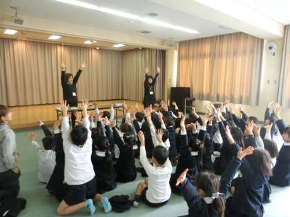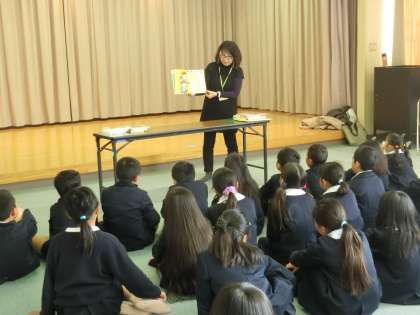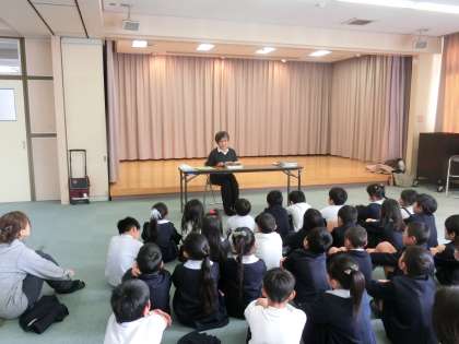 3年生は多目的室でおはなし会を行いました。ひまわりの会の皆さんの語りに、みんな引き込まれていきました。