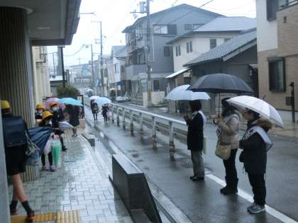 PTAの皆さまによる今年度のあいさつ運動は本日が最終になります。雨が降る中本当にありがとうございました。