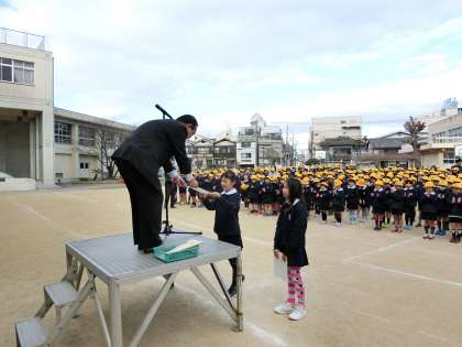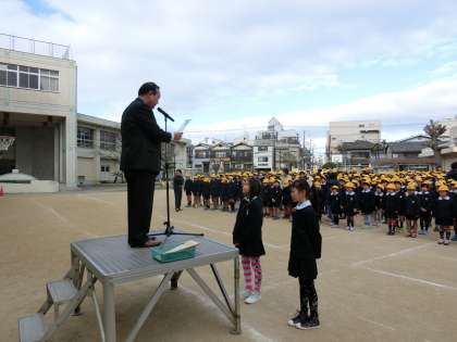 本日も朝会で表彰を行いました。