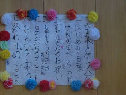 そのあとは、6年生からもお礼の言葉と歌のお返しがあり、とても良い雰囲気の卒業を祝う会になりました。