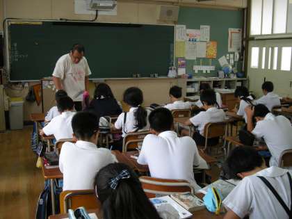 6月7日(水)5年生では、今日、外国語活動や栄養指導があり、時間割通りにできませんでした。5年3組では、1時間目、いつもは学級の子ども達を2つに分割してする算数を元にもどして行いました。小数のわり算の復習をしていました。