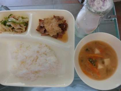 6月14日(水)鶏肉のおろしじょうゆかけ、みそ汁、野菜いため、ごはん、牛乳