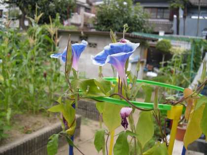 7月14日(金)2年生の子ども達が大事そうに植木ばちを教室に運んでいました。何かと思ってみますと、ミニトマトがたわわに実っていました。その後学習園へ見に行きますと、ミニトマトのほかに1年生が育ててきたアサガオがまだ咲いていました。ヒマワリも咲いていて夏を感じました。