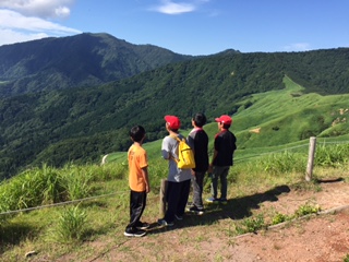 高丸山頂上に全員元気に到着しました。頂上に着くと教頭先生と田中先生が応援に駆けつけてくださり、みんなびっくりしていました。山頂からの眺めは最高です。写真に写ってるのは氷ノ山です。