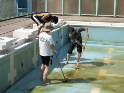 8月24日(木)教職員で力を合わせて、床をきれいにした教室へ机やいす、荷物を入れる作業を行いました。その後プール清掃をしました。いよいよ2学期が始まると、教職員の皆さんも汗を流しながら気合が入ってきたことと思います。さて、子ども達は明日の始業式に向けて準備ができているでしょうか。