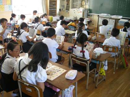 毎週金曜日の8時30分から45分は「朝の読書」の時間です。子ども達は静かに本に集中しています。