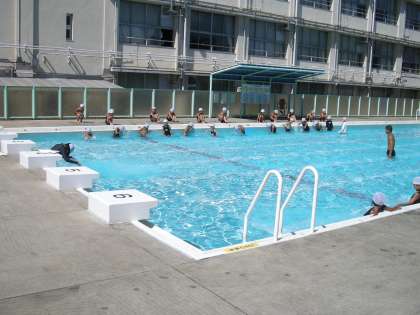 9月1日(金)2時間目、1年生は今年最後のプール水泳の時間でした。いつも通り水慣れをしっかりしました。日差しは結構強いのですが、プールから上がると、風が冷たく感じられ、寒そうにしていました。最後に宝探しをして盛り上がりました。
