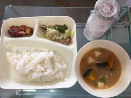 9月4日(月)たこのやわらか煮、みそ汁、野菜いため、ごはん、牛乳