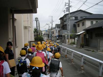 9月6日(水)午後、台風が近畿地方に接近、あるいは災害が発生したとの想定で地区別児童会の教室に集合し、そこから放送の指示に従いながら集団下校を行いました。子ども達は騒ぐことなく落ち着いて行動できていました。