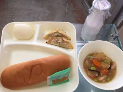9月13日(水)あげぎょうざ、鶏肉ととうがんの中華煮、なし(豊水)、パン、牛乳