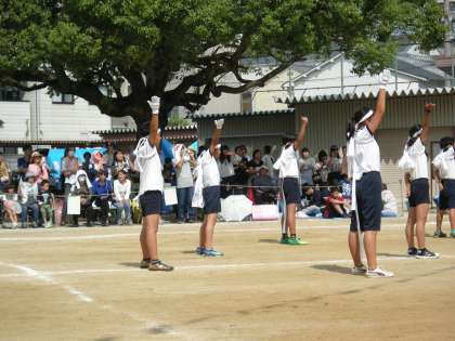 応援合戦は赤組、白組が一つになりました。応援団はかっこよかったですね。午後の応援の演技は上着を着ていて、なんだろうとおもっていると「35億」のポーズに児童会のめあてがちゃんとはいっていました。