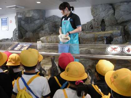 海遊館では、タイミングよくエサやりの様子をいくつか見ることができました。今日は魚や動物の方から子ども達の方へ寄ってきてくれているように思いました。とてもラッキーな日でした。