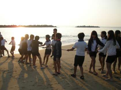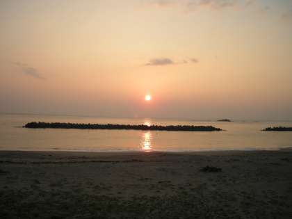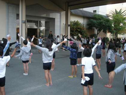 10月12日(木)修学旅行2日目、快晴です。全員元気に朝のつどい、地引き網の活動をしました。網を引くときに「ソーラン、ソーラン」という掛け声も聞こえてきました。魚だけでなく海老やたこも網の中にはいっていました。朝ごはんに出てくるそうです。楽しみです。