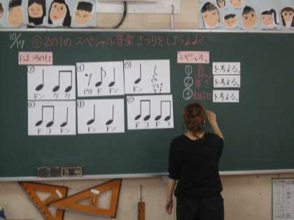 10月17日(火)5時間目、2年1組の音楽は「2の1のスペシャル音楽まつりをしよう」でした。班で相談して、繰り返しのリズムをいろいろな楽器を使って表現していきました。子ども達は、音楽づくりを楽しんでいました。