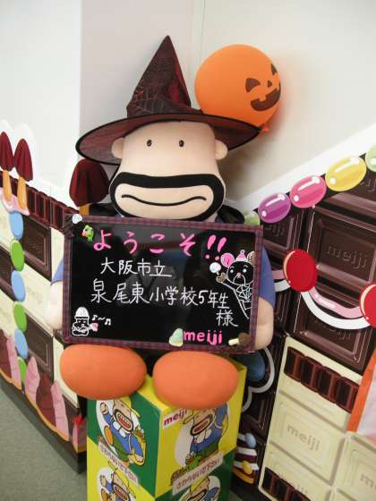 10月27日(金)5年生が社会見学で、明治製菓、松下電池の工場へ見学に行きました。明治製菓の工場に着いて、あま〜いにおいが漂ってくると、子ども達のテンションは一気にあがりました。工場は最高の衛生状態の中でほとんどが機械化されていました。働いている人は、わずかで、検査や材料の補充など、人の力がどうしても必要な部分にいるだけでした。