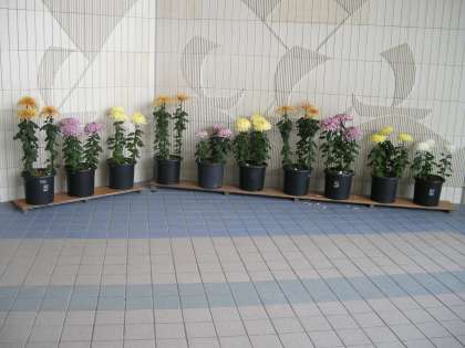 11月15日(水)体育館前にグリーンボランティアの方々が菊の花を並べてくださっています。