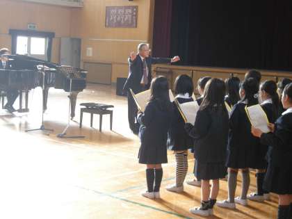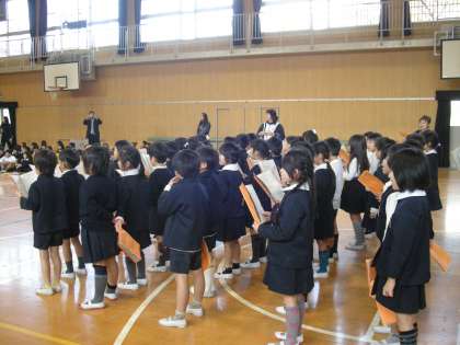 11月21日(火)音楽集会が行われました。元小学校の校長先生の山下豊先生と内海和夫先生をお招きし子ども達に指導をしていただきました。子ども達の歌声がはっきりとわかるぐらい美しくなり驚きました。子ども達も歌声をひびかせるのがとても楽しかったようです。