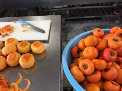 柿は、調理員さんが一つ一つ丁寧に、むいてくださいました。種のない大変甘い柿でした。