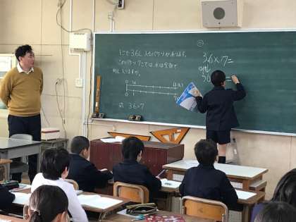 1月167日(火)4年生は1組、2組とも学級を2分割して算数を行うようにしています。今日は小数のひっ算を考える問題でした。