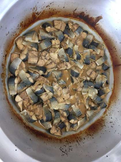 さばのみそ煮は一切れずつにしっかり味がしみ込むように大鍋で炊いていただきました。小骨に気をつけながらおいしく食べました。