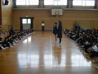 4月10日(火)1年生と2〜6年生の対面式が行われました。児童代表の人がしっかりあいさつをしていました。