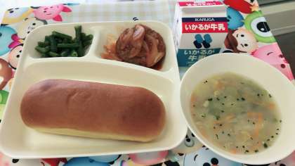今日の給食は 煮込みハンバーグ!!