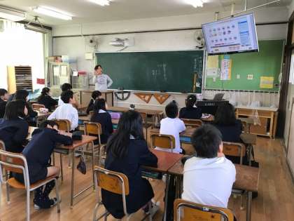 4月13日(金)朝のイングリッシュタイムは来週からスタートですが、6年1組では、今日DVDを見て英語の学習をしていました。