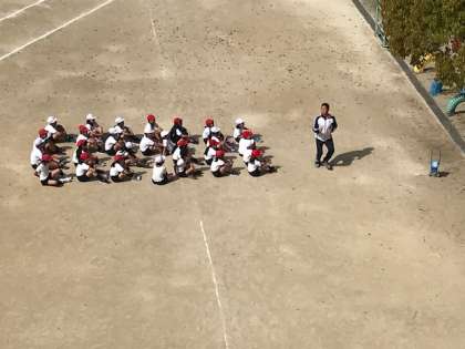 4月13日(金)1時間目、3年1組が体育をしていました。50m走を走る前に走り方を喜田先生に教わっているところです。昨年よりタイムは上がったかな?