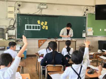 4月13日(金)5年2組が算数をしていました。「2.98を10倍、100倍、1000倍すると、どのような数になるか調べよう」という問題を考えていました。