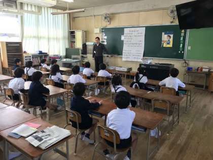 4月20日(金)毎週金曜日の朝はイングリッシュ・タイムです。1年2組からは元気な声が聞こえてきました。