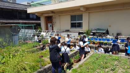さわやかな天気となり、3年生と6年生が学習園で学習していました。