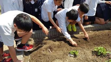6年生はインゲン豆の種を植えていました。大きく生長するのが今から楽しみですね。