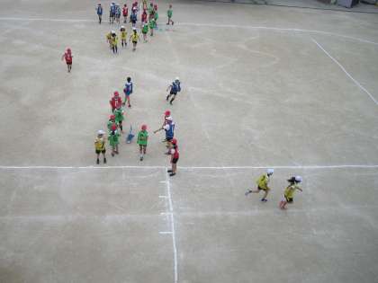 4月24日(火)5年1組は体育でリレーをしていました。グループで練習した後、勝負をしていました。