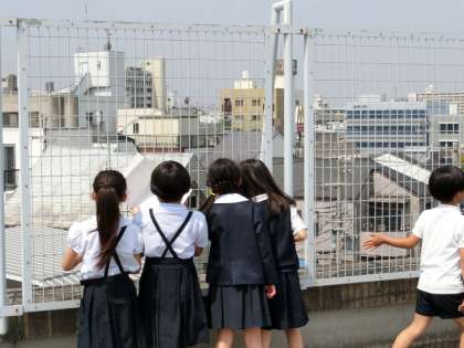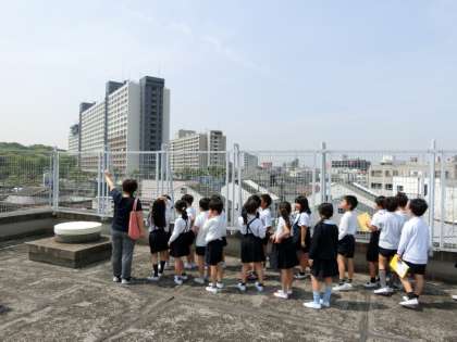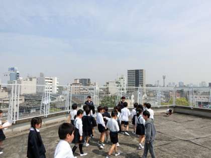 五月晴れとなった今日、3年生が屋上へ上がって方角の学習をしていました。東西南北でそれぞれ何が見えたかな?おうちでも何が見えたか聞いてみてください。