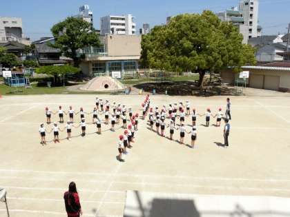 今日は快晴となりました。今日も各学年とも運動会の練習をがんばっています。上から順に4年生、1年生、2年生の様子です。