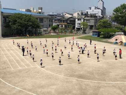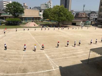 5月15日(火)2時間目、1年生が演技の練習を頑張っています。「やってみよう!」のかけ声がかわいらしく、「がんばれー!」と声をかけたくなります。