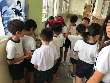 6月7日(木)写真の通り大きくなりました。子ども達も手の上で這わせたりしてかわいがっています。桑の葉を一日に3回も与えないといけないぐらい食欲があるそうです。
