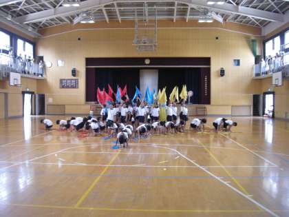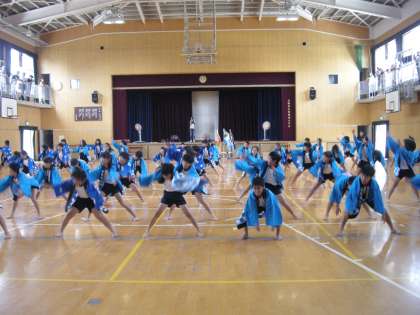 6月9日(土)6年は学年集会の前に「心をひとつに」を披露しました。保護者の皆さんには、体育館のギャラリーから見ていただきました。ソーランの曲が聞こえたのか、1年生や2年生も見に来ていました。