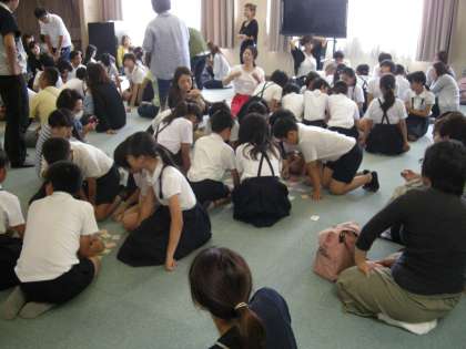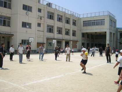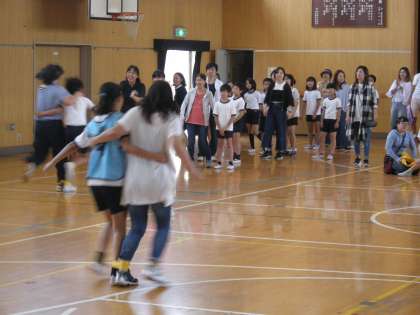 6月9日(土)4年はドッジボールをしました。さすがに3年生よりもボールのスピードがあり、大人もうかうかしていられなかったようです。5年生は百人一首をしました。6年生は、親子で2人3脚をしたりボール運びをしたりしていました。