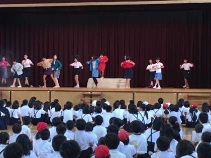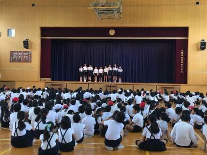 6月13日(水)今日の児童集会は放送委員会が担当でした。イントロ当てクイズを楽しんだ後、放送委員会によるダンスがありました。