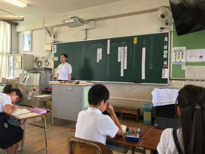 6月13日(水)1時間目、3年1組では教育実習生の石本先生が国語の授業をしていました。「ゆうすげ村の小さな旅館」のつぼみさんの様子を読み取っていました。