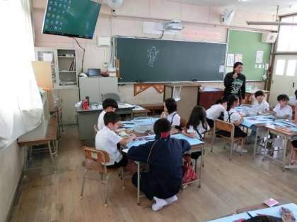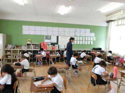 職場体験学習の様子です。3人とも全学級を二日間でまわってもらう予定です。休み時間には校庭で遊んで汗びっしょりになっていました。