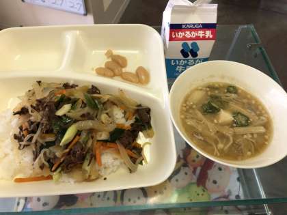 7月3日(火)牛丼、とうがんのみそ汁、大福豆の煮もの、牛乳