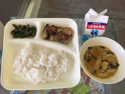 給食は赤、黄、緑の3つの栄養素が実にバランスよく配置されていますね。