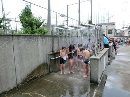 今日は、1年生と5年生以外の学年が、プールに入り、歓声と水しぶきをあげていました。水温は24度〜25度と、冷たく感じるコンディションでしたが、今年初めての小学校でのプールに、子どもたちは大はしゃぎでした。