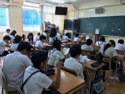 8月30日(木)朝の読書タイムで6年3組では、シーンとして本を読んでいました。